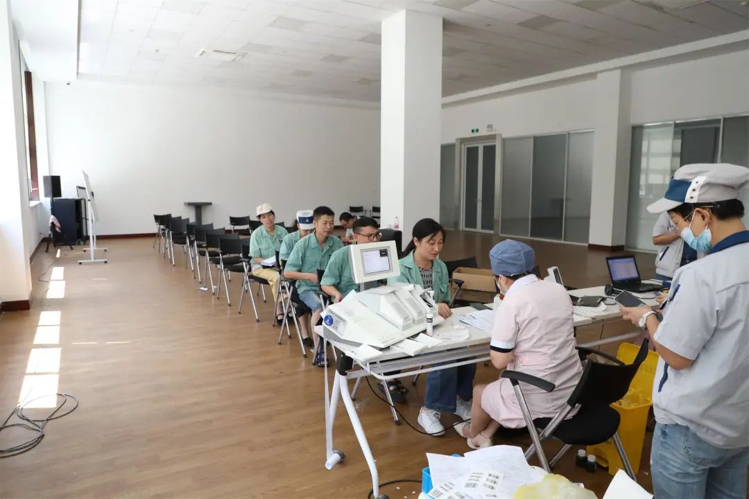 Early in the morning, the congress center of Sanhua Xinchang Industrial Park was busy, blood donation trucks parked in place, and registration and inspection workstations were set up. There were a steady stream of people from Sanhua who came to donate blood, waiting in line for registration and related checks before donating blood.